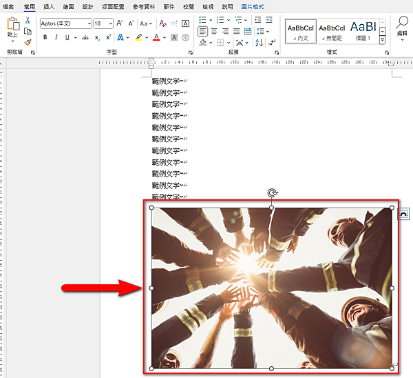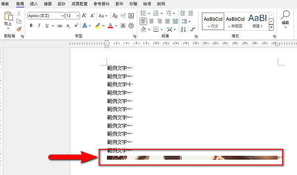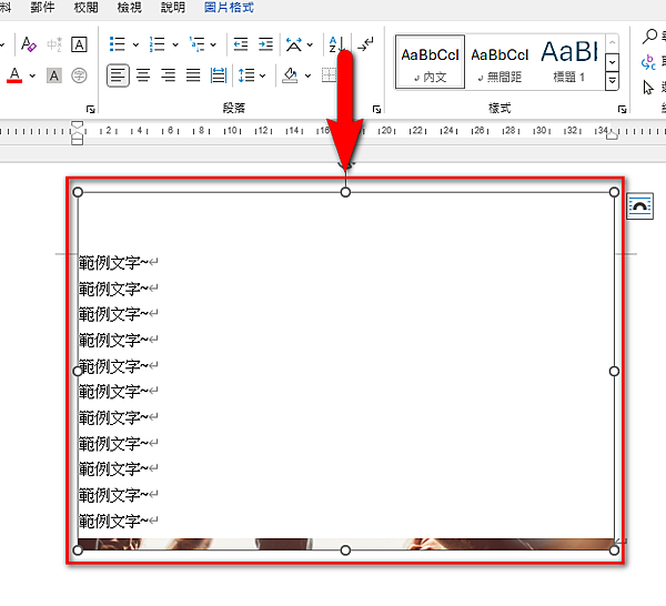 以下圖為範例,在Word插入圖片後,只顯示出圖片底部的部分樣貌: