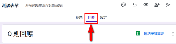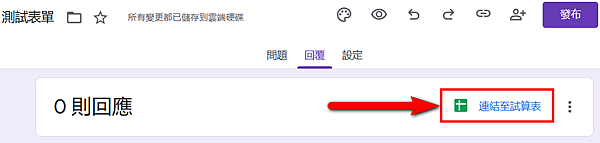 1.在表單的「回覆」分頁中,點選「連結至試算表」: