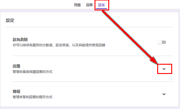 3.接著請點選「設定」->「回覆」旁的「 V 」符號: