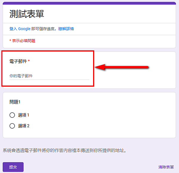 7.完成設定之後,表單會將「電子郵件」設為必填項目: