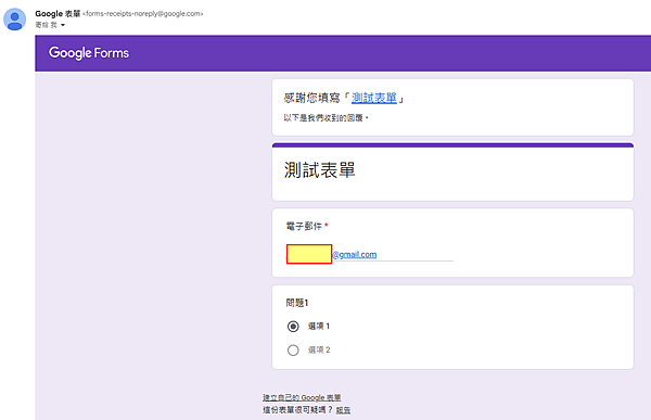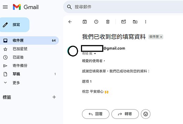 📝 確認信內容會包含: 表單名稱、該使用者填寫的欄位與答案
