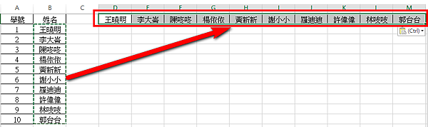 4.完成上述步驟後,原本直式的清單資料,會轉成橫式的清單資料: