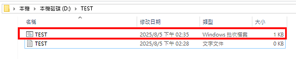 8.完成存檔的動作之後,會發現剛剛存檔的檔案類型為「Windows批次檔案」,請在該檔案上點擊滑鼠左鍵兩下,以執行該檔案: